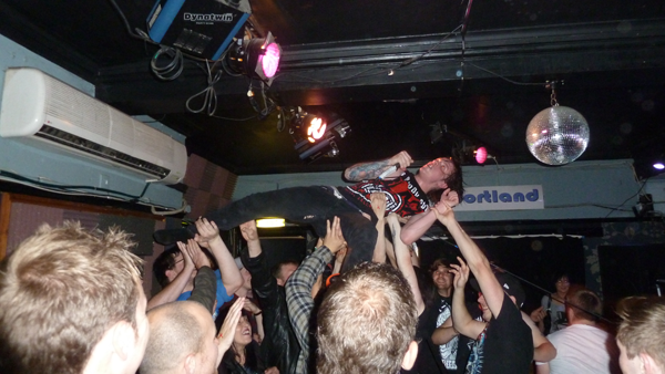 The set was constructed fairly evenly from their debut just released album City of Vultures and the Bridges Will Burn EP though many songs appear on both and though I couldn’t confess to knowing every song as well as most of the others in attendance, the energy and enthusiasm of the band was impossible not to get swept up in. Austin mentioned that they hadn’t played a show “where you could see every single persons face” in quite some time and how much they were enjoying it. One particular highlight was Austin and guitarist Ben Tovey going into the middle of the crowd and starting a song off while a circle pit ran around them (they lasted at least half the song before going back on stage). Recent single Nothing Left, album title track City of Vultures and Power Through Fear all went down a storm and the set closing Bridges Will Burn brought the evenings second wall of death (complete with safety reminder from Austin), this one minus the hardcore punches and fly kicks.
