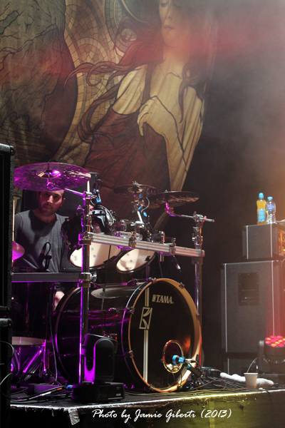 James: Chimpspanner (8) kick off the evening’s entertainment with their progressive instrumentals, the music is easily entertaining enough without vocals and the role of the frontman is fulfilled by the bands drummer who becomes the vocal point of the bands stage show. Chimp Spanners set often lulls the unwary audience into a false sense of security before unleashing devastating Meshuggah-esque grooves to get the heads banging early and by the time they’ve finished a significant portion of the crowd have clearly been won over, judging by the amount of raised horns that signal their departure.