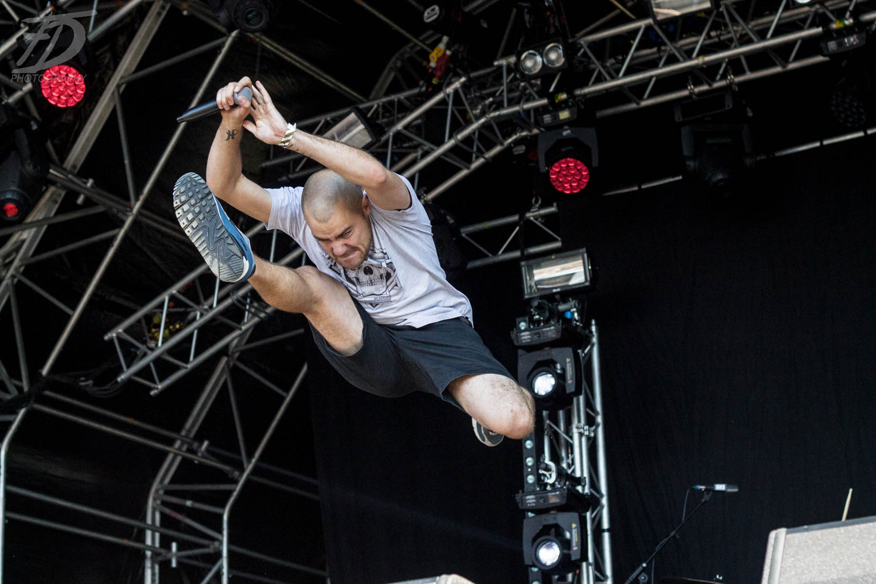 Stick To Your Guns (8) on the third stage are the first of today’s headliners and sadly they are in a very difficult position clashing with Dillinger Escape Plan, but despite this and the lack of crowd, nothing is going to stop this band. They fire through their set and easily get those who are in attendance pumped up. Fan favourites such as “We Still Believe” see multiple members of the crowd flying over the barrier screaming every word along with front man Jesse Barnett. Some might believe the odds were against Stick To Your Guns and they had possibly the worst slot of the festival, but it’s very clear this didn’t phase the band as they performed an excellent and chaotic set like they always do.