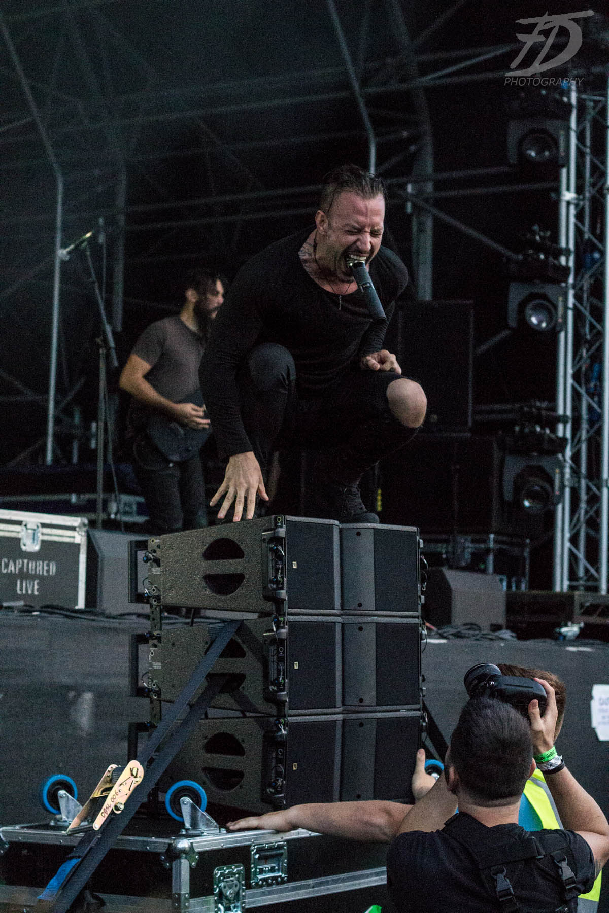 Betraying The Martyrs (6) struggle a little bit with poor sound and a sparse crowd. Still there are some highlights to their set. The band have some impressive songs in their Aaron Matts is a great frontman both vocally and with his stage presence. And as silly as it might be, watching people start a circle pit to a metal cover of “Let It Go” is entertaining. It certainly isn’t the most memorable set of the weekend but it’s still an enjoyable one.