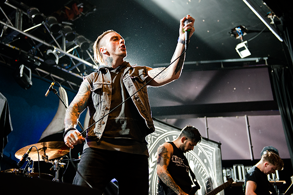 The first of two British support acts – a nice touch from Trivium – were As Lions (8), formed from the remnants of Rise To Remain. On the strength of tonight’s performance they should go far, despite hardly releasing anything yet. Having a successful father can be something of a handicap at times, with sceptics ready to pounce. Dads don’t come much more famous than Iron Maiden‘s motormouth vocalist Bruce Dickinson and no doubt he is a great teacher both in singing and stagecraft. Austin Dickinson is a confident and charismatic frontman in his own right. He also has a superb live voice as powerfully demonstrated on the band’s only officially released track so far, “The Fall”. His band are also musically tight with a punchy and catchy metalcore-style sound. The crowd reacted with loud enthusiasm and As Lions escaped this den with many new admirers.
