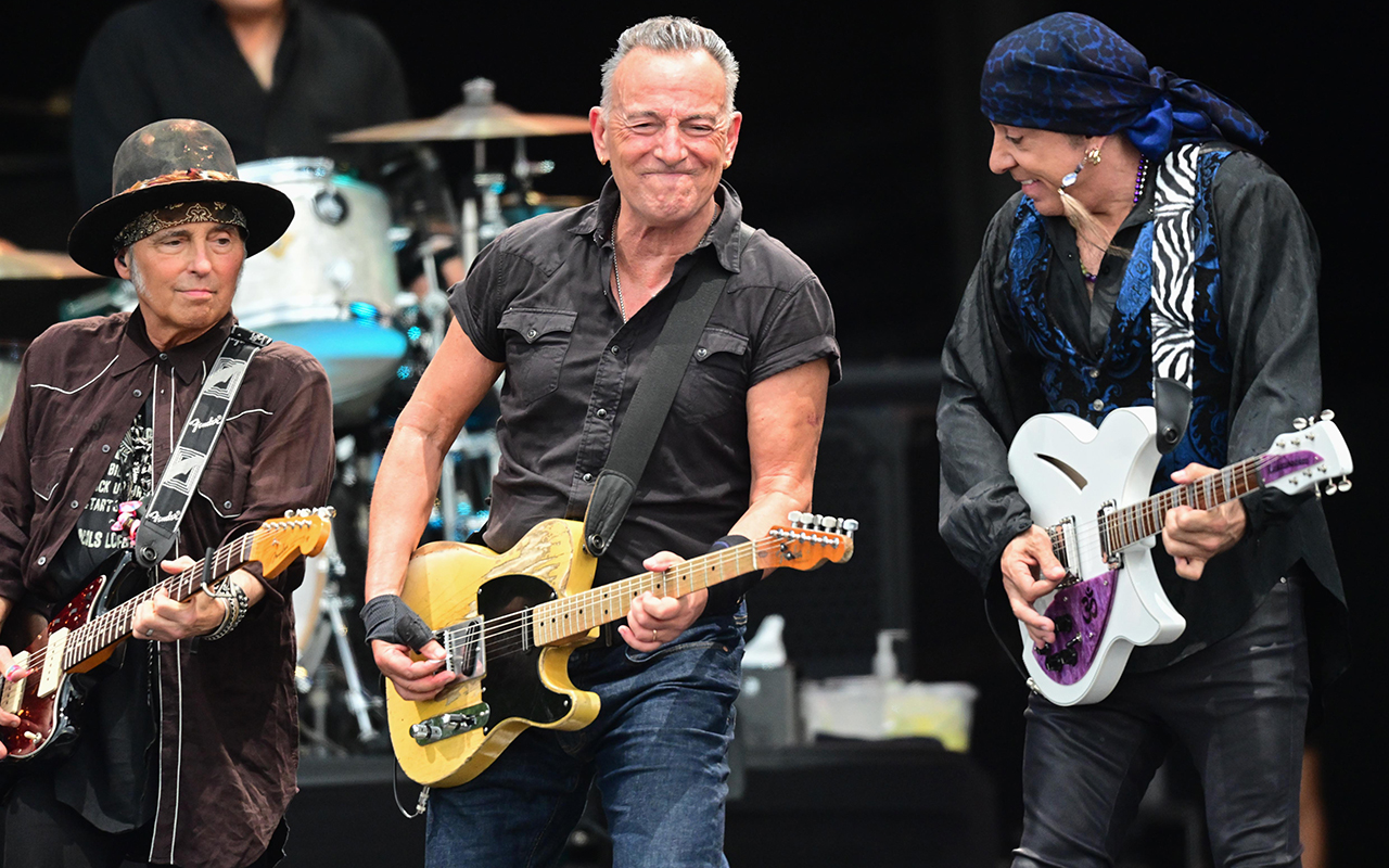 Nils Lofgren, Bruce Springsteen and Steven Van Zandt of the E Street Band at BST Hyde Park. Photo by Dave Hogan/Hogan Media/Shutterstock