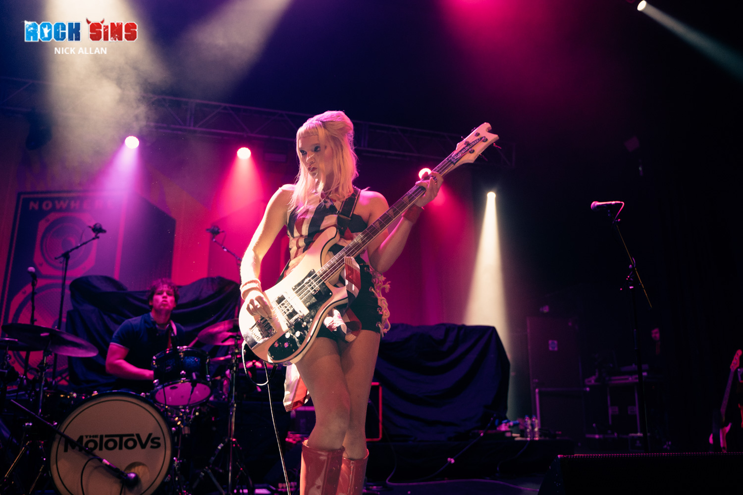 The evening kicked off with The Molotovs, a dynamic three-piece band that knew how to make an entrance. Lead singer Matthew was a whirlwind of energy, darting around the stage while belting out catchy tunes. His enthusiasm was infectious, pulling the crowd into the performance. Bassist and backing vocalist Issey Carts matched this level of vigor, headbanging and leaping around with a relentless spirit, while drummer Ice provided a solid backbone, keeping the beats crisp and on point.