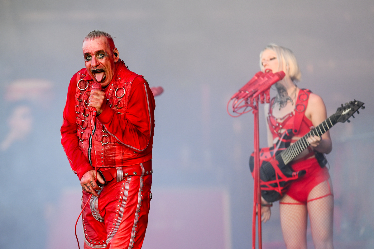 Time now for Till Lindemann to take to the stage. Who enters with his five bandmates in a line, to an audience that’s obviously amused by their attire. Special dispensation must be going to the drummer in a cheerleader outfit. Who’s sporting fake breasts, a dental mouth spreader and a variety of other facial accroutrements more usually utilised on livestock. Which he’ll be working in for the next hour! During which were treated to thirteen songs, including Golden Shower, Ich hasse Kinder and Skills in Pills.