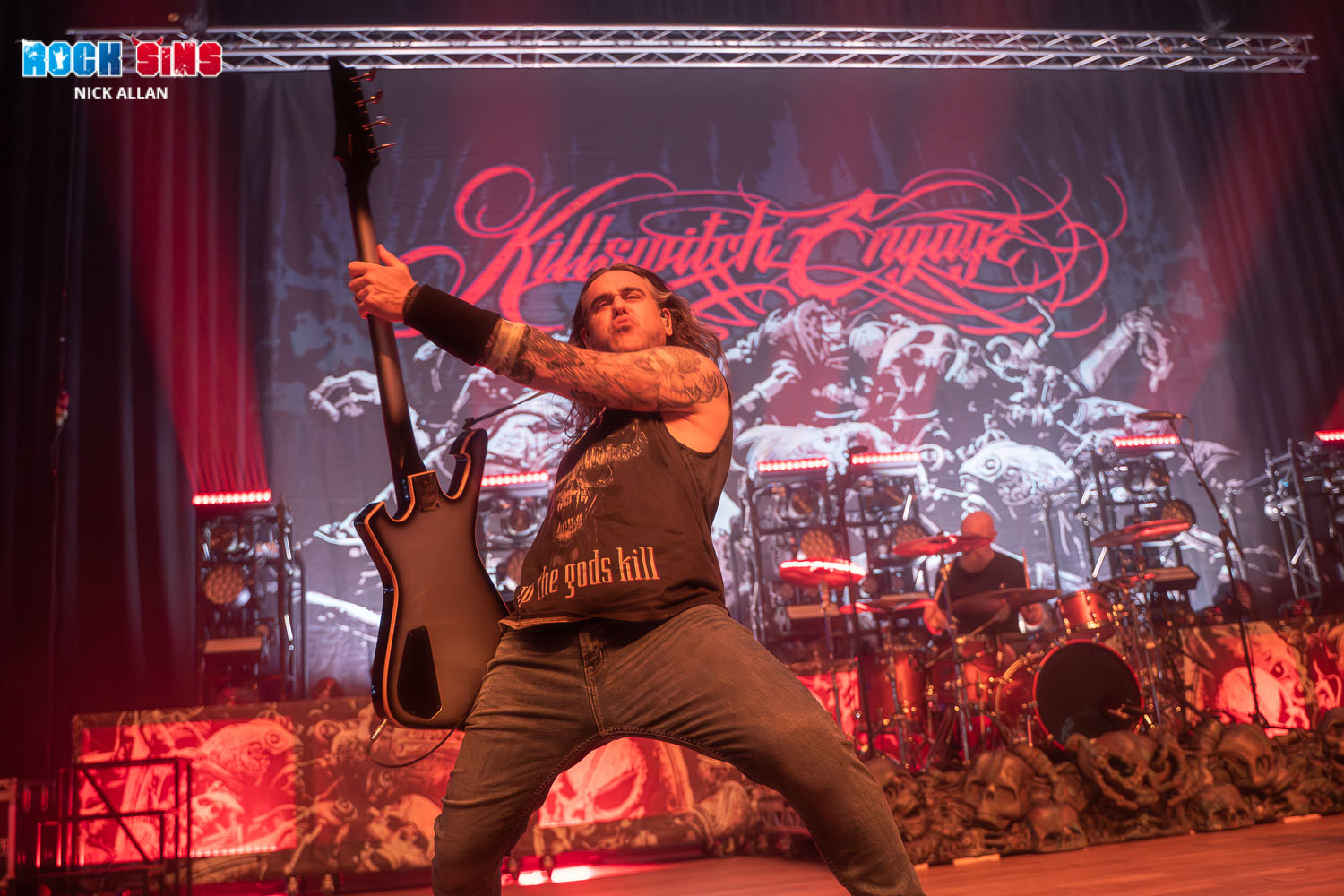 Killswitch Engage (8.5) brought a masterclass in metalcore to The Halls in Wolverhampton, leaving absolutely nothing in the tank. From the moment they hit the stage, the Massachusetts heavyweights had the crowd in the palm of their hands, launching straight into Strength of the Mind – a ferocious opener that set the tone for what would be an unrelenting night of riffs, screams, and singalongs.